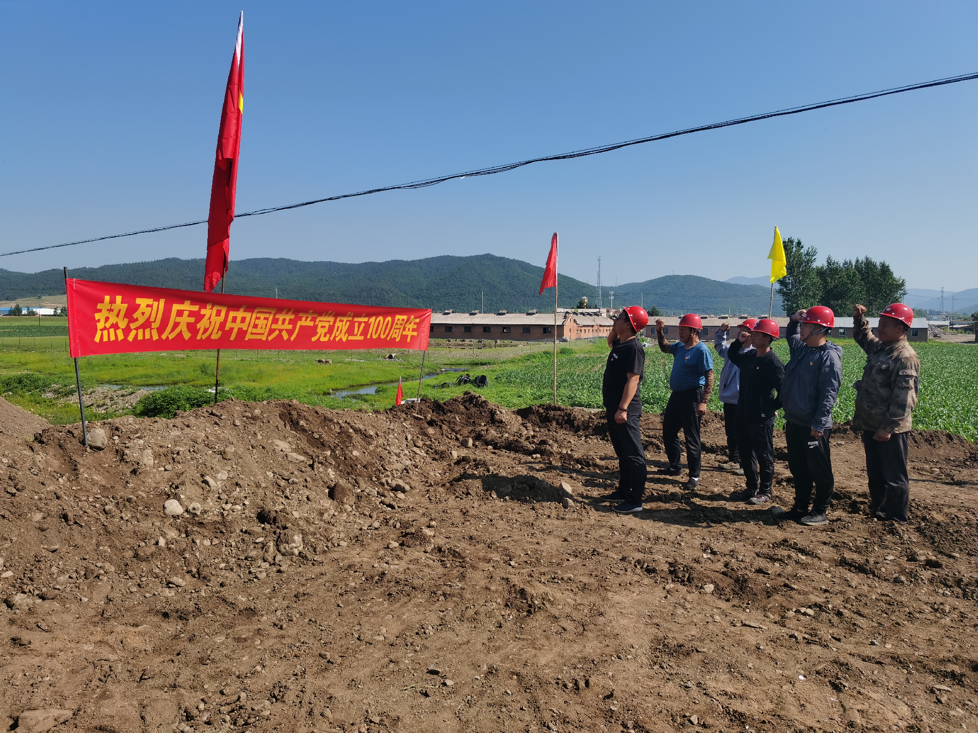 一个支部就是一个战斗堡垒,一名党员就是一面旗帜。6月30日,为庆祝中国共产党成立100周年,公司舒兰项目部、图们项目部全体党员,面对鲜红的党旗,再次重温入党誓词,80字的入党誓词,是一份政治誓言、一份忠诚承诺、一份责任担当,是项目部全体共产党员共同的行为准则,大家铭记于心、付诸于行,时时检视,终身恪守,凝心聚力抓项目,攻坚克难促发展,在工程一线履行责任,在施工现场践行初心使命。
