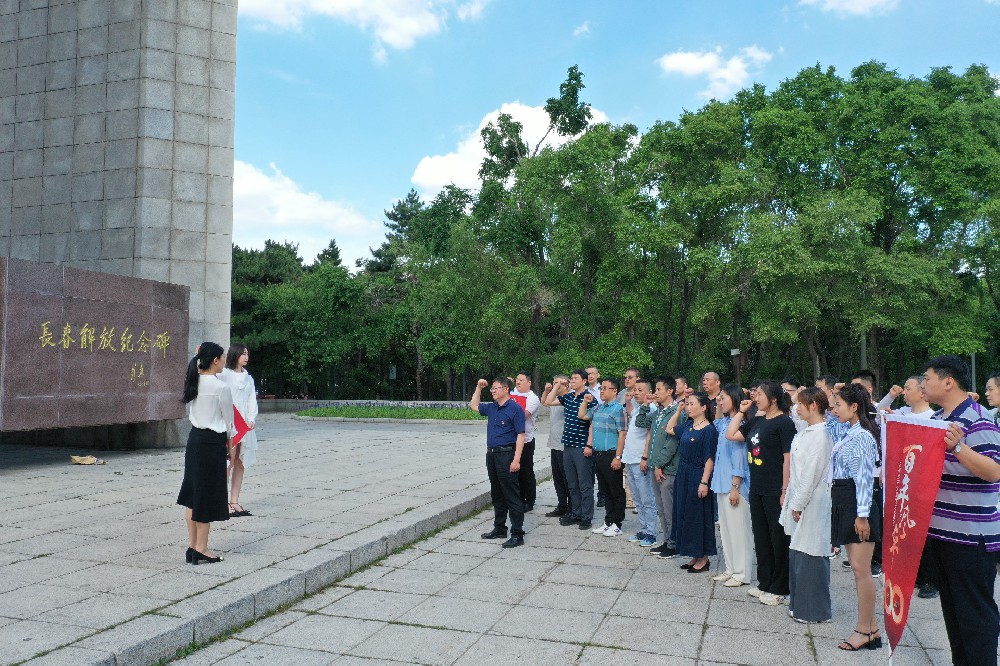 党员们首先来到长春解放纪念碑前,全体党员佩戴党徽在解放纪念碑前庄严肃立,缅怀先辈的光辉业绩,面向党旗,在领誓人张继真同志的带领下,“我志愿加入中国共产党,拥护党的纲领……”,庄严举起的右手,铿锵有力的誓言,回荡在解放纪念碑周围。
