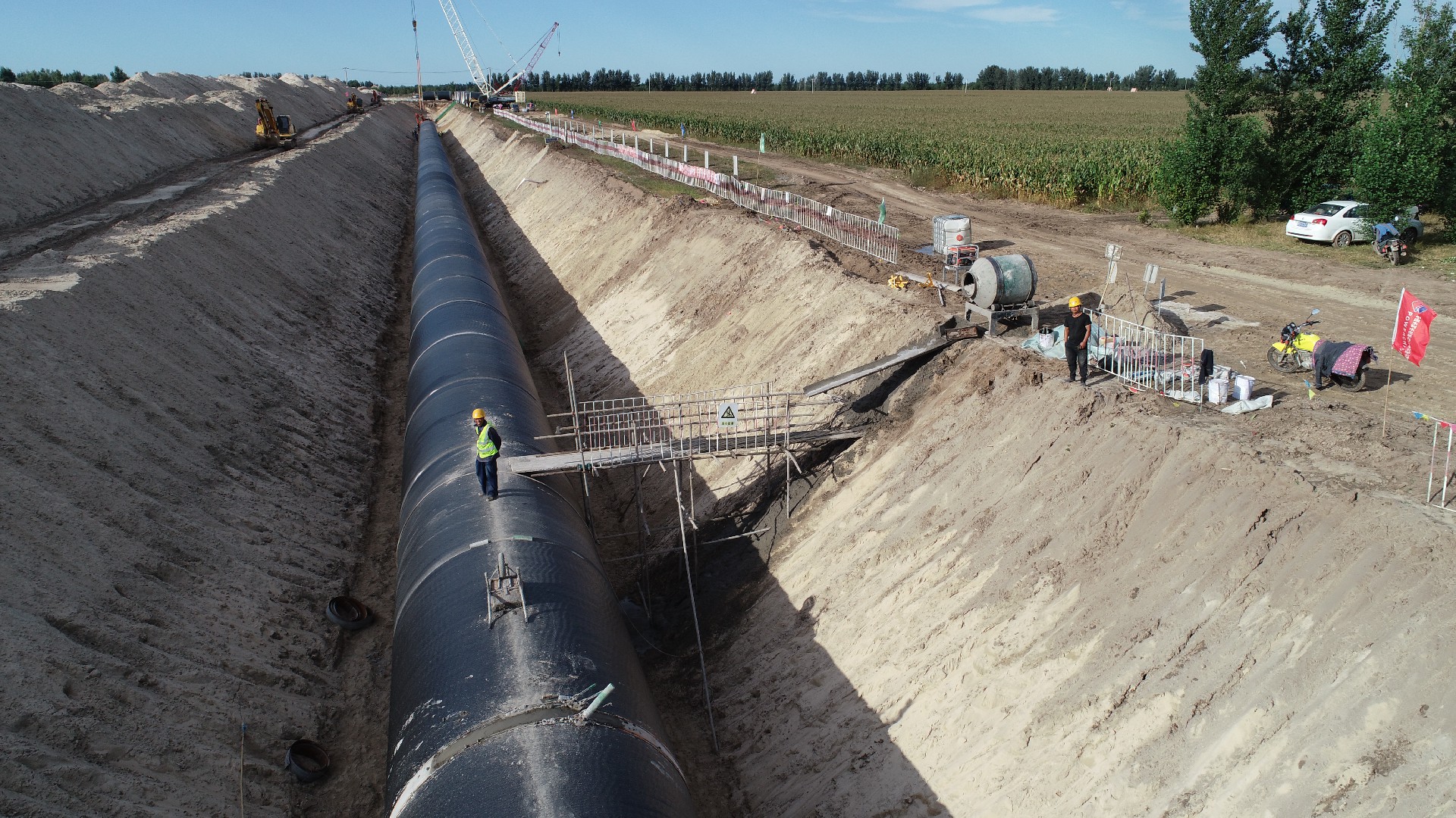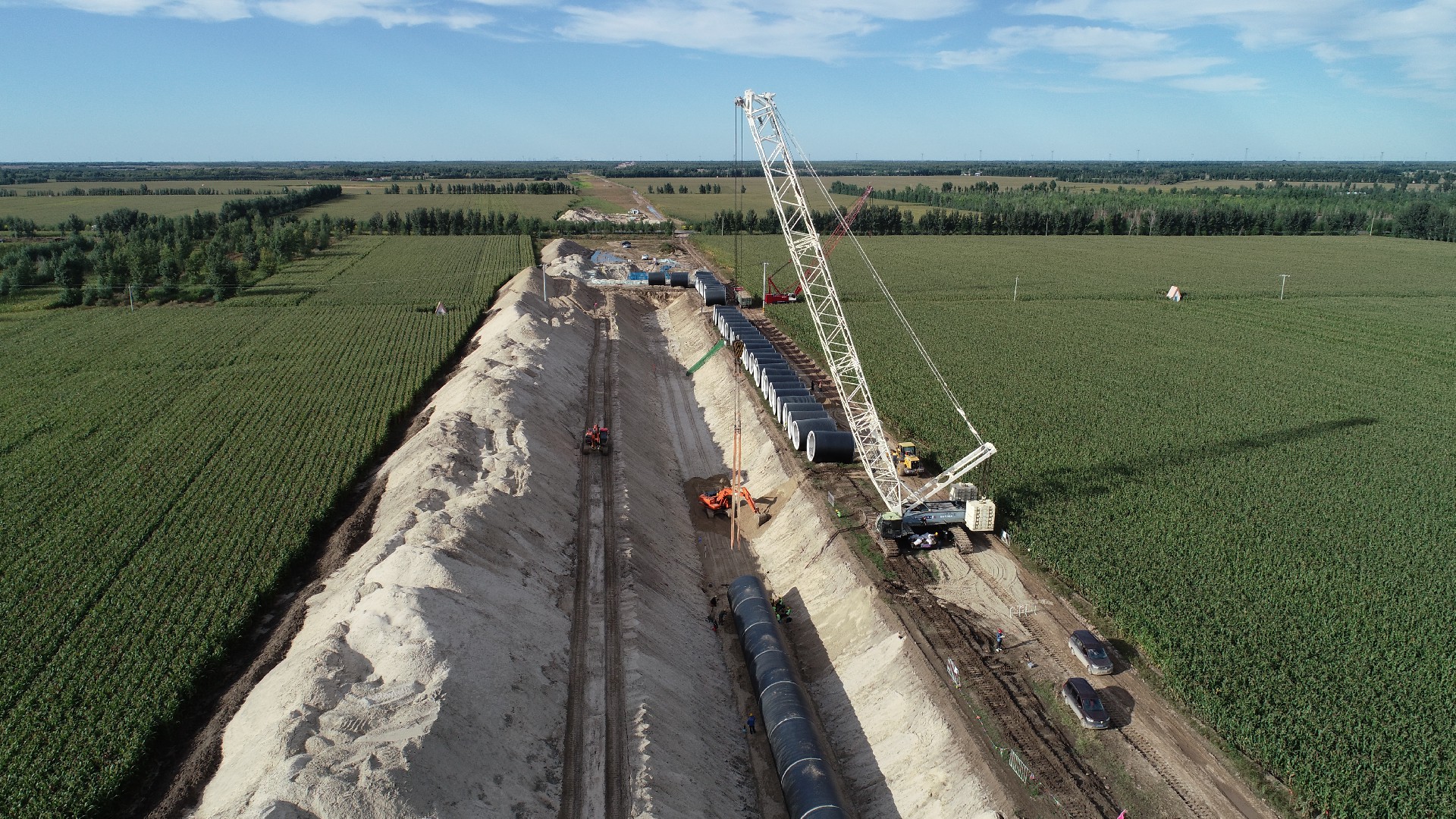 我单位施工段为平原区管线段桩号T264+104.97-T275+474.97,线路长度11.37km,均为PCCP管线施工,单管同槽铺设,管径DN3200。
