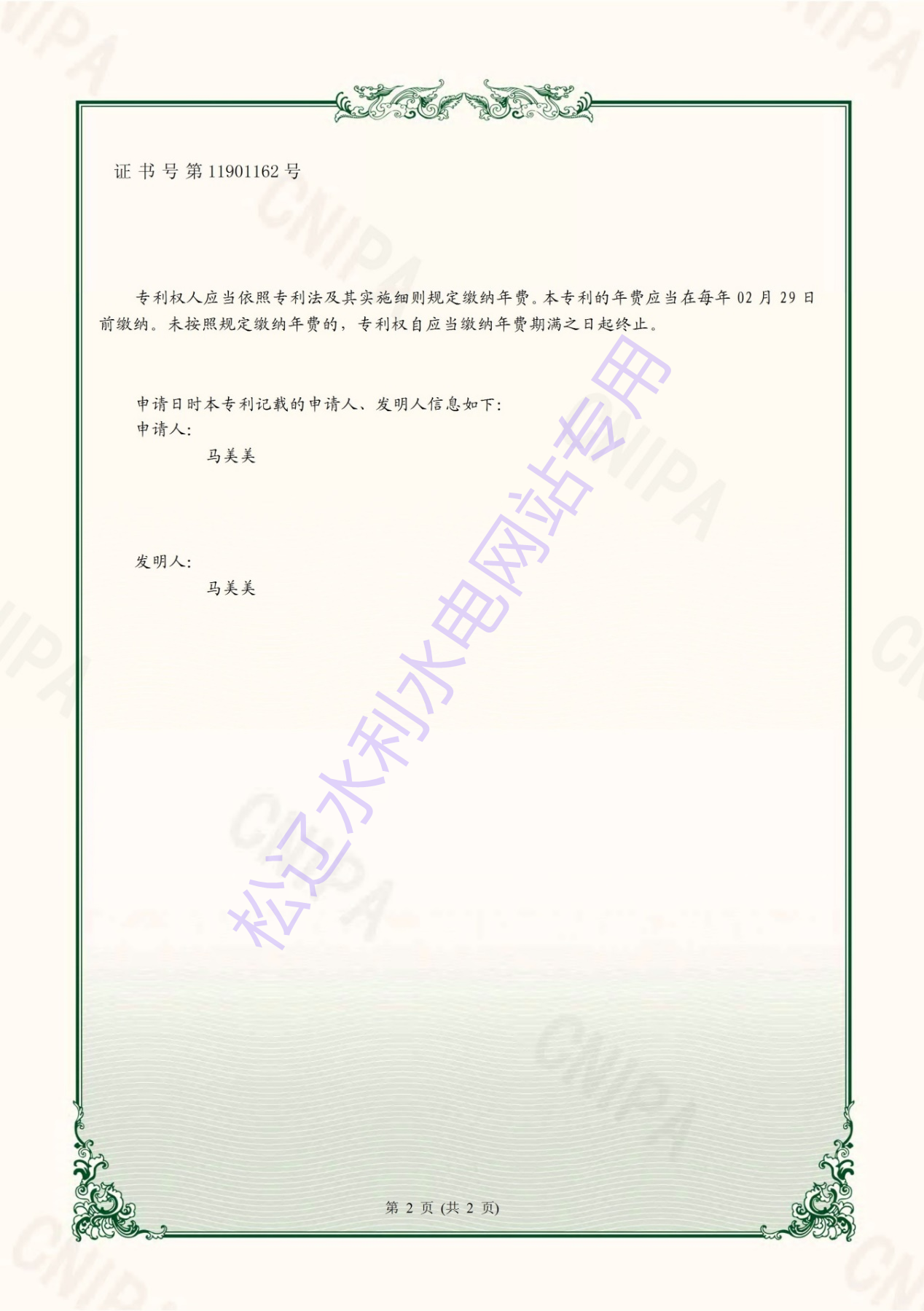 “一种水利工程施工用防水涂料混合装置”实用新型专利证书